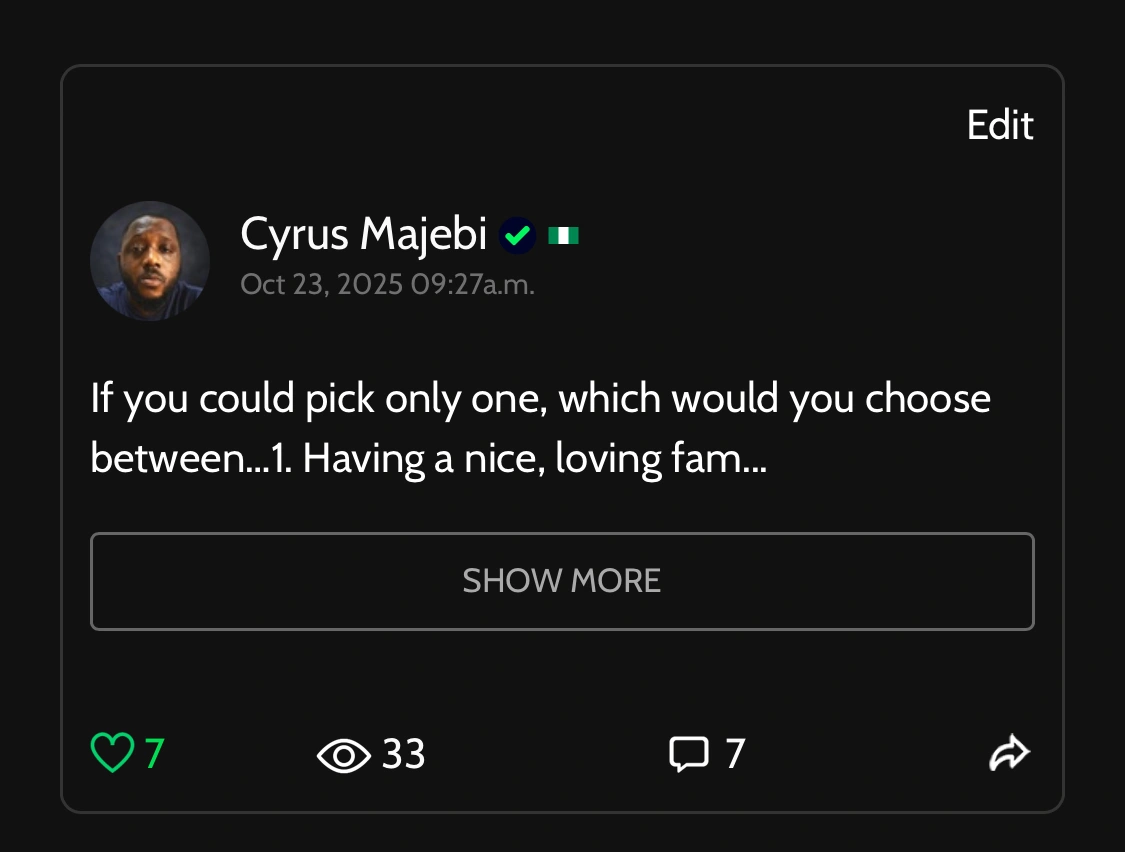 Your Wall is more than a space — it's your personal stage. Use it to share your journey, your passions, and what drives you. Let your audience see why you are who you are, and why you do what you do.