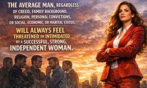 "The average man, regardless of creed, family background, religion, personal convictions, or social, economic, or marital status, will always feel threatened or intimidated by a successful, strong, independent woman."