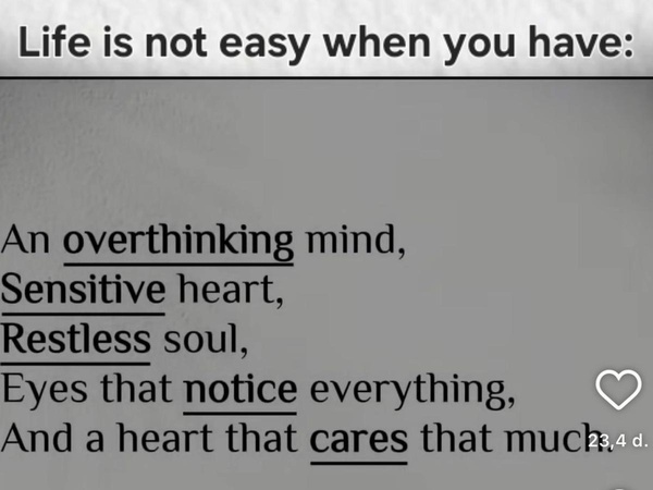 <p>Sometimes I feel like my heart wants things I don’t even know how to say out loud.</p><p>Not big things — just…</p><p>to feel loved for real.</p><p>To feel chosen.</p><p>To feel like I matter to someone without having to beg for it.</p><p>It’s crazy because the heart is soft, and the world moves rough.</p><p>So we learn to act like we don’t care.</p><p>We pretend.</p><p>We get used to hiding how we feel.</p><p>And then there’s the mind —</p><p>the real troublemaker.</p><p>The mind overthinks everything.</p><p>One small thing happens and suddenly your brain is like:</p><p>“Maybe they don’t like me.”</p><p>“Maybe I’m not enough.”</p><p>“Maybe I said too much.”</p><p>“Maybe I shouldn’t exist today.”</p><p>And you’re just sitting there, tired… from thinking.</p><p>Then comes the soul.</p><p>That quiet part of you that doesn’t shout — it just aches.</p><p>Not a loud pain, but that heavy-in-the-chest kind of tired.</p><p>The kind where you stare at the ceiling and just… feel everything and nothing at once.</p><p>People say “You’re young, you’ll be fine.”</p><p>But they don’t understand that being young is the confusing part.</p><p>You’re still figuring yourself out while trying not to fall apart in front of everyone.</p><p>You’re trying to love without losing yourself.</p><p>Trying to forgive past hurts.</p><p>Trying to grow.</p><p>Trying to stay gentle.</p><p>Trying to make it through the day without breaking.</p><p>It’s a lot.</p><p>But even in all of this…</p><p>we’re learning.</p><p>We’re learning to choose people who don’t make love feel like a battle.</p><p>We’re learning to take things slow.</p><p>We’re learning that not everyone deserves the soft parts of us.</p><p>We’re learning that we don’t have to carry everything alone.</p><p>None of us have life figured out yet.</p><p>We’re all just trying — and sometimes trying is enough.</p><p>If your heart is still hoping,</p><p>your mind is still searching,</p><p>and your soul is still fighting to feel okay…</p><p>then you’re doing better than you think </p><p>Or at least you can only hope you are.</p><p>The End.</p><p>Thanks for your patience and attention.</p>