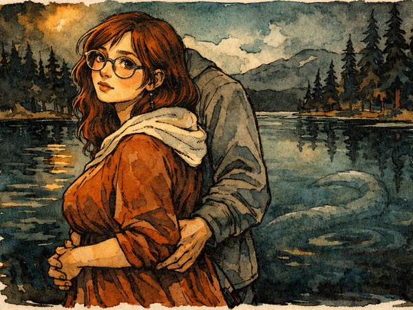 <p><br/></p><p><img alt="" src="/media/inline_insight_image/4824.png"/></p><p><br/></p><p>There is a creature beneath the surface of me;</p><p>restless, enormous, older than naming </p><p>that rises whenever you turn your face toward the window</p><p>and the light finds your glasses first,</p><p>then, slow as a sacrament,</p><p>finds your eyes.</p><p><br/></p><p><em>Brown as the October water at Wallowa,</em></p><p><em>brown as the silt beneath,</em></p><p><em>brown as the thing that breathes down there</em></p><p><em>and does not die.</em></p><p><br/></p><p>---</p><p><br/></p><p>I have pressed my ear to stranger shores.</p><p>I have listened for the sound of God</p><p>in the reeds, in the collapsed mouths of old volcanoes.</p><p>But nothing: </p><p><em>nothing </em>prepares a man for the architecture of you.</p><p><br/></p><p>The curve of your shoulder is a shoreline I keep returning to,</p><p>shipwrecked and grateful,</p><p>grateful and ruined.</p><p>The slope from your waist to your hip.</p><p>I set my hand there like a hymnal,</p><p>like a boy in a pew who has just learned,</p><p>that holiness is something</p><p><em>you can touch.</em></p><p><br/></p><p>---</p><p><br/></p><p>When you speak, it is not perfect.</p><p>The syllables come a little sideways,</p><p>a little soft around the edges,</p><p><em>oh, but Mother, oh, but mercy</em></p><p>it is the most honest sound I have ever been undone by.</p><p>Not the voice of angels in their terrible geometry,</p><p>but something closer:</p><p>a human thing,</p><p>warm and imprecise and <em>mine</em>.</p><p>A sentence that begins in one place,</p><p>and ends somewhere tender and unplanned,</p><p>the way all the best rivers do.</p><p><br/></p><p>---</p><p><br/></p><p>And my heart </p><p><br/></p><p><em>Eugene, I am not well.</em></p><p><br/></p><p>My heart has grown teeth.</p><p>It presses against the ribs like something that has remembered it is wild,</p><p>like the monster remembering the whole dark width of the lake is hers.</p><p><br/></p><p>It says: <em>Hold her! Don’t let go.</em></p><p>You stand at the edge of something,</p><p>the waters very deep,</p><p><em>and you do not mind.</em></p><p><br/></p><p>---</p><p><br/></p><p>So, I hold you.</p><p><br/></p><p>Both hands at the soft latitude of your waist,</p><p>the way you would carry a light</p><p>through a corridor with no walls</p><p><em>carefully</em>,</p><p>with your whole body leaning slightly toward.</p><p><br/></p><p>---</p><p><br/></p><p>There are monsters in every lake.</p><p>There is a creature in every chest</p><p>that wants to split the ribs and rise.</p><p><br/></p><p>Mine rose the day I saw you,</p><p>tilting your glasses up with one finger,</p><p>squinting at something small and bright.</p><p>and I thought:</p><p><br/></p><p><em>This is the most fragile and irreplaceable thing,</em></p><p><em>I have ever been allowed to stand beside.</em></p><p><em>Handle her like the last good light of an afternoon</em></p><p><em>you cannot photograph</em></p><p><em>and cannot keep</em></p><p><em>and cannot stop</em></p><p><em>standing in. </em></p><p><br/></p><p>--</p><p><br/></p><p>You are porcelain.</p><p>You are the kept thing.</p><p>You are the cup my grandmother never let us use</p><p>set now in the middle of the table,</p><p>full of something living,</p><p>full of something I would crawl across</p><p>every cold floor in Oregon to reach.</p><p><br/></p><p>I will not drop you.</p><p>I will not drop you.</p><p>I will hold the curve of you,</p><p>like a psalm I finally understand.</p><p><br/></p><p><em>not with the grip of a man who is afraid,</em></p><p><em>but with the hands of a man,</em></p><p><em>who knows exactly what he is holding.</em></p>