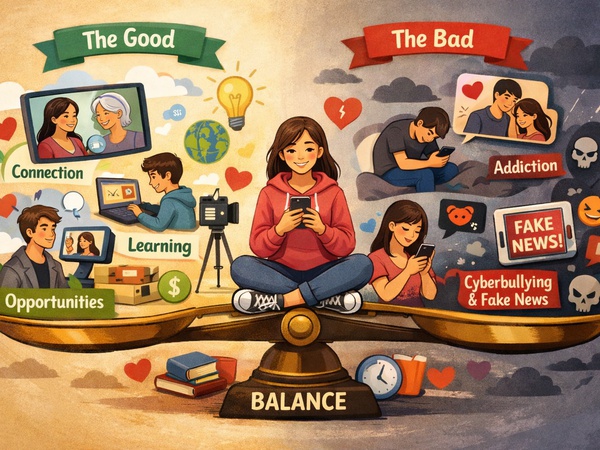 <br/><p>Social media has become part of our everyday life. From the moment we wake up to the time we go to bed, we scroll, like, post, and share. Platforms like Instagram, WhatsApp, TikTok, Facebook, and X (Twitter) have changed how we communicate, learn, and even see ourselves. While social media has many benefits, it also comes with serious downsides that we shouldn’t ignore.</p><p>The Good Side of Social Media</p><p>One of the biggest advantages of social media is connection. It allows people to stay in touch with friends and family no matter the distance. A simple message or video call can make someone feel close, even when they are far away.</p><p>Social media is also a powerful learning tool. Many people gain knowledge through educational videos, online classes, tutorials, and motivational content. Students, business owners, and creatives use social media to grow their skills and showcase their talents.</p><p>Another positive side is opportunity. Social media has created jobs and businesses. Many people earn money through content creation, online marketing, freelancing, and brand promotions. Voices that were once unheard can now be shared with the world.</p><p>The Bad Side of Social Media</p><p>Despite its benefits, social media has a dark side. One major problem is addiction. Many people spend too much time online, which affects their sleep, studies, work, and real-life relationships.</p><p>Social media can also affect mental health. Constant comparison with others can lead to low self-esteem, anxiety, and depression. People often post only their best moments, making others feel like they are not doing enough in life.</p><p>Another serious issue is misinformation and cyberbullying. Fake news spreads quickly, and hurtful comments can damage someone emotionally. Privacy is also at risk, as personal information can be misused.</p><p>Conclusion</p><p>Social media is neither completely good nor completely bad—it depends on how we use it. When used wisely, it can educate, connect, and empower us. But when abused, it can distract, harm mental health, and create problems. The key is balance: using social media as a tool, not letting it control our lives.</p>