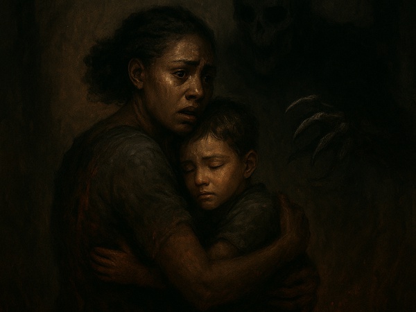 <p><br/></p><p>The first night the thing came for Mara, the rain refused to fall.</p><p><br/></p><p>She lay awake beside her two sleeping sons, Keji and Tayo, listening to the dry wind scrape against the wooden hut like claws searching for a way in. Eruwa village had not known peace for months; children vanished without footprints, elders muttered about the forest waking, and the moon often rose with a sickly red shade that no one could explain.</p><p><br/></p><p>Mara tried not to breathe too loudly.</p><p><br/></p><p>Then came the whisper.</p><p><br/></p><p>A voice that sounded like it was spoken through a mouth full of dirt.</p><p><br/></p><p>“Mara… give me what is mine…”</p><p><br/></p><p>Her blood froze. She knew that voice. She’d heard it the night her husband, Aremu, disappeared while hunting near the forbidden valley.</p><p><br/></p><p>The shadow under the doorway stretched, then rose… like a tall figure unfolding from the ground. Its fingers dragged along the roof, impossibly long. Its face flickered between her husband’s, a skull, and a crying child.</p><p><br/></p><p>The smell—rotting leaves and old sorrow—filled the room.</p><p><br/></p><p>“Your husband made a promise. A life for a life. He abandoned his.</p><p>Now I’ve come for yours.”</p><p><br/></p><p>Mara clutched her sons tighter, pressing their faces into her chest. Her voice trembled.</p><p><br/></p><p>“Please… take me instead.”</p><p><br/></p><p>The shadow cocked its head. “Your heart is loud. I can taste the love in it. But I do not want you. I want the boy born under the silent moon.”</p><p><br/></p><p>Keji.</p><p><br/></p><p>Her weakest child. Her miracle child. The one whose birth had come with no cry, no wind, no sound.</p><p><br/></p><p>The creature glided toward him, claws whispering like knives.</p><p><br/></p><p>Mara hurled herself forward.</p><p><br/></p><p>The claws tore across her back, but she didn’t move. She wrapped her arms around Keji and screamed.</p><p><br/></p><p>Something inside her—fear, rage, love—exploded.</p><p><br/></p><p>“You will not touch my son.”</p><p><br/></p><p>The hut trembled. The lantern burst. The ground split with a soft glow as faint shimmering threads rose from the dirt—spirits of the lost children. Spirits of mothers’ grief.</p><p><br/></p><p>Whispers filled the hut.</p><p><br/></p><p>“Protect her… let our loss end with her…”</p><p><br/></p><p>The spectral hands grabbed the creature. It shrieked—an inhuman howl—thrashing as they dragged it back beneath the doorway into the darkness it came from.</p><p><br/></p><p>Before vanishing, it spat a curse.</p><p><br/></p><p>“You saved the child tonight.</p><p>But darkness remembers.</p><p>It always remembers.”</p><p><br/></p><p>Then silence.</p><p><br/></p><p>Mara collapsed, bleeding and shaking. Keji and Tayo woke crying, clinging to her. She held them close, knowing this battle was not the last.</p><p><br/></p><p>But they were alive.</p><p><br/></p><p>And that was enough—for now.</p><p><br/></p><p><strong>Part 2 — The Darkness That Returned</strong></p><p><br/></p><p>For weeks, the village pretended life was normal.</p><p><br/></p><p>But the forest never forgets a stolen meal.</p><p><br/></p><p>Mara healed slowly, though the claw marks on her back burned at night like the creature was touching her through the scars. Keji grew quieter, waking each night from nightmares he could never describe. The villagers said he stared at the trees too long. That the shadows bent toward him.</p><p><br/></p><p>Mara ignored the whispers—until the night Keji whispered:</p><p><br/></p><p>“Mama, it’s calling me again.”</p><p><br/></p><p>Her heart cracked.</p><p><br/></p><p>A wind howled outside—dry, sharp, carrying the same bitter scent from that night. The hut door rattled. The shadows flickered unnaturally, growing longer, leaning inward.</p><p><br/></p><p>Then the voice filled the room again.</p><p><br/></p><p>“The silent moon child is mine.</p><p>You cannot protect him forever.”</p><p><br/></p><p>This time, the creature did not rise from the doorway.</p><p>It rose from Keji’s own shadow on the floor.</p><p><br/></p><p>Mara screamed and grabbed a burning log from the fire pit, slamming it onto the shadow. But the flame dimmed, as if choking. The creature only laughed.</p><p><br/></p><p>The spirits did not appear this time.</p><p><br/></p><p>They had already given all they could.</p><p><br/></p><p>“Mara… you defied fate.</p><p>But fate has patience.</p><p>I have returned to finish the promise.”</p><p><br/></p><p>Mara’s tears hit the floor again—but instead of light, darkness spread from them, swirling like smoke. Her grief had changed. It was no longer a plea.</p><p><br/></p><p>It was rage.</p><p><br/></p><p>“Take me. Take my life.</p><p>Just leave my child!”</p><p><br/></p><p>The creature paused. Something shifted in its shape.</p><p><br/></p><p>“A mother’s sacrifice…” it whispered. “That is a powerful offering.”</p><p><br/></p><p>Its claws reached for her chest.</p><p><br/></p><p>But Keji scrambled between them, arms wide.</p><p><br/></p><p>“Take me instead!</p><p>Leave my mother!”</p><p><br/></p><p>The creature froze. Mara screamed his name.</p><p><br/></p><p>The spirit-threads from before flickered faintly—weak, nearly gone—but they stirred at Keji’s bravery. The air hummed.</p><p><br/></p><p>The creature snarled, enraged. “The boy offers himself?</p><p>Breaking the bargain again?</p><p>Then I take both!”</p><p><br/></p><p>It lunged.</p><p><br/></p><p>And then—Keji’s shadow moved on its own.</p><p><br/></p><p>It rose like a second body behind him… a small, dark figure with glowing, gentle eyes. It wrapped its arms around Keji protectively. The creature stumbled back.</p><p><br/></p><p>Keji’s “silent moon” birth had not been a curse.</p><p><br/></p><p>It had been a mark.</p><p>A child born between worlds.</p><p>A chi