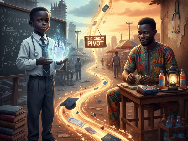 <p>He used to say, “I will hold the heart of a man in my hands and make it beat again.” </p><p><br/></p><p>I thought he was being poetic, just a boy in a starched uniform who liked the smell of methylated spirit. </p><p><br/></p><p>I laughed a little and told him to finish his Eba first. </p><p><br/></p><p>I didn’t know the stethoscope would end up hanging on a nail behind a bedroom door.</p><p><br/></p><p> Not like that....</p><p><br/></p><p>The dreams left that night.....</p><p><br/></p><p>They left somewhere between the third ASUU strike and the day the bank balance started looking like a phone number. </p><p><br/></p><p>They left the night the induction fee became the money for a mother’s surgery. </p><p><br/></p><p>We begged the system not to break us. </p><p><br/></p><p>We told them our brains were gold mines. </p><p><br/></p><p>We said we would sit through the blackouts and the heat, no matter how long the wait lasted... but the hunger was deeper than a degree could reach.</p><p><br/></p><p>And maybe we realized that letting go was the only way to stay alive.</p><p><br/></p><p>We didn’t belong in a small shop, selling data bundles and charging phones. </p><p><br/></p><p>We belonged in the theater, in the workshops, and in the labs with our steady hands and our big ideas.</p><p><br/></p><p>Now, the "Side Hustle" looks good some days. </p><p><br/></p><p>The "Tech" money is coming in. </p><p><br/></p><p>The business is steady, but it feels wrong.</p><p><br/></p><p> Because every credit alert, every delivery note, every sale that isn't "The Dream"... reminds us of what we lost. </p><p><br/></p><p>What the country lost.</p><p><br/></p><p><br/></p><p>We didn’t want to be "Vendors." We wanted to be what we wrote on those Career Day posters.</p><p><br/></p><p> We wanted the dream to stay, but it changed. </p><p><br/></p><p>Just like that.</p><p><br/></p><p><br/></p><p>In books, they call this Occupational Displacement. </p><p><br/></p><p>It is a fancy way of saying the world wasn't ready for your brilliance.</p><p><br/></p><p> But in the streets, we know the real name: The Great Pivot.</p><p><br/></p><p>Yet, look at the magic we made from the pieces.</p><p><br/></p><p>The Engineer who never built a bridge now manages a fleet of trucks with the same careful mind, moving food across the land.</p><p><br/></p><p> The Doctor who never got her ward now runs a business that feeds twenty families, treating an economy that was bleeding.</p><p><br/></p><p>We are a nation of "Almosts" who became "Everything."</p><p><br/></p><p>We might not be wearing the white coats or the hard hats we saw in our sleep. </p><p><br/></p><p>Our hands are stained with different inks and different oils, but we are still here.</p><p><br/></p><p><br/></p><p>The sky isn't pretty because we reached the stars we wanted.</p><p><br/></p><p> The sky is pretty because of the light we kept burning down here, in the dark, when the doors were locked.</p><p><br/></p><p> We didn't get the world we asked for, so we built a new one with our own hands.</p><p><br/></p><p>We didn't just survive.</p><p><br/></p><p> We became the miracle we were waiting for.</p><p><br/></p><p><br/></p>