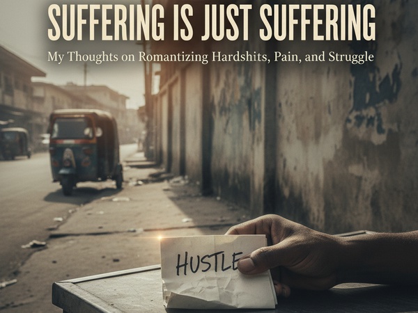 <p><strong>My Thoughts on Romanticizing Hardships, Pain, and Suffering</strong></p><p><br/></p><p>I feel like we make too much of a big deal about pain and struggles sometimes. Like, everywhere you look—movies, music, even social media—people act like you <em>have</em> to go through hard times to be strong or successful. They make it seem like suffering is this cool thing that makes you deep or special. But honestly, I’m tired of that story.</p><p><br/></p><p>Don’t get me wrong, tough times can teach you stuff. I’ve had my share of struggles, like everyone else—school stress, family wahala, or just life in Nigeria where things aren’t always easy. But why do we act like pain is the only way to grow? I see people on X posting about “hustle till you cry” or “no sleep, just grind,” like it’s a flex. But that mindset can mess you up. I read somewhere that burnout is a real problem for young people, and I believe it. Chasing struggle just because it’s “deep” isn’t healthy.</p><p><br/></p><p>Sometimes, suffering is just suffering. It doesn’t always make you wiser or stronger. Like, if someone’s going through something heavy, we shouldn’t make them feel like they need to turn it into some big life lesson. Not every hardship has a happy ending, and that’s okay. I also think this focus on pain pushes aside people whose struggles don’t look “epic” enough, like quiet battles with anxiety or family issues.</p><p><br/></p><p>I’m not saying we should avoid challenges. But why don’t we talk more about finding joy or learning from good moments? You don’t need to be in pain to be a better person. I think real strength is knowing when to rest, when to say no to stress, or when to just enjoy life. We need to stop making suffering look so cool and start celebrating peace and balance too. That’s what I’m trying to do, at least.</p>